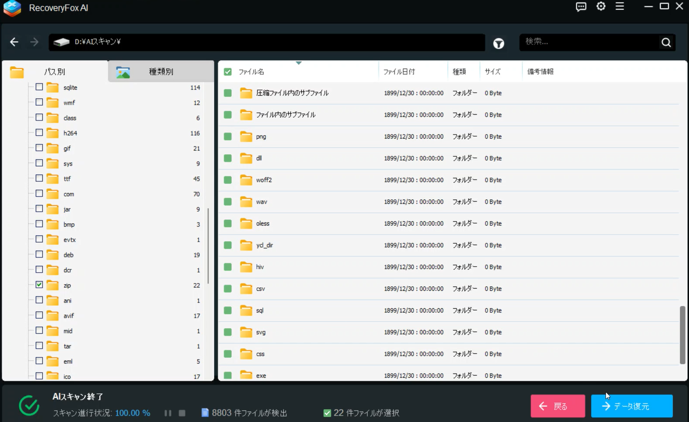 Después de ejecutar el Análisis con IA completo en la unidad USB, detectó 8,803 archivos, a pesar de que la unidad parecía vacía. Esto se debe a que detecta rastros de datos que fueron eliminados hace mucho tiempo.